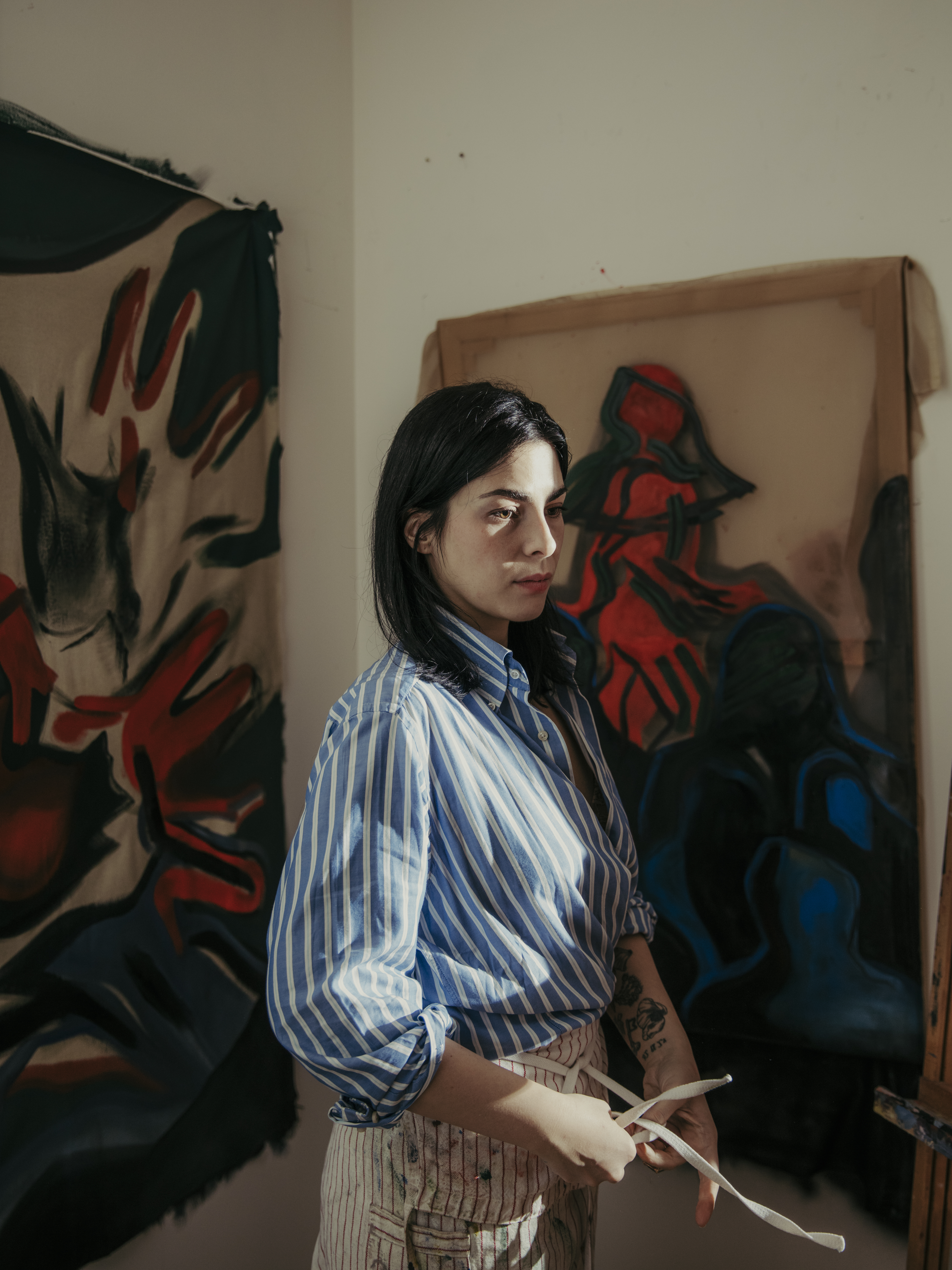 Matete Martini investigates anatomy, skin, and the relationship between brain, touch, and emotion through bold brushstrokes, fast lines, spray on canvas, and deeply emotional photographic works.