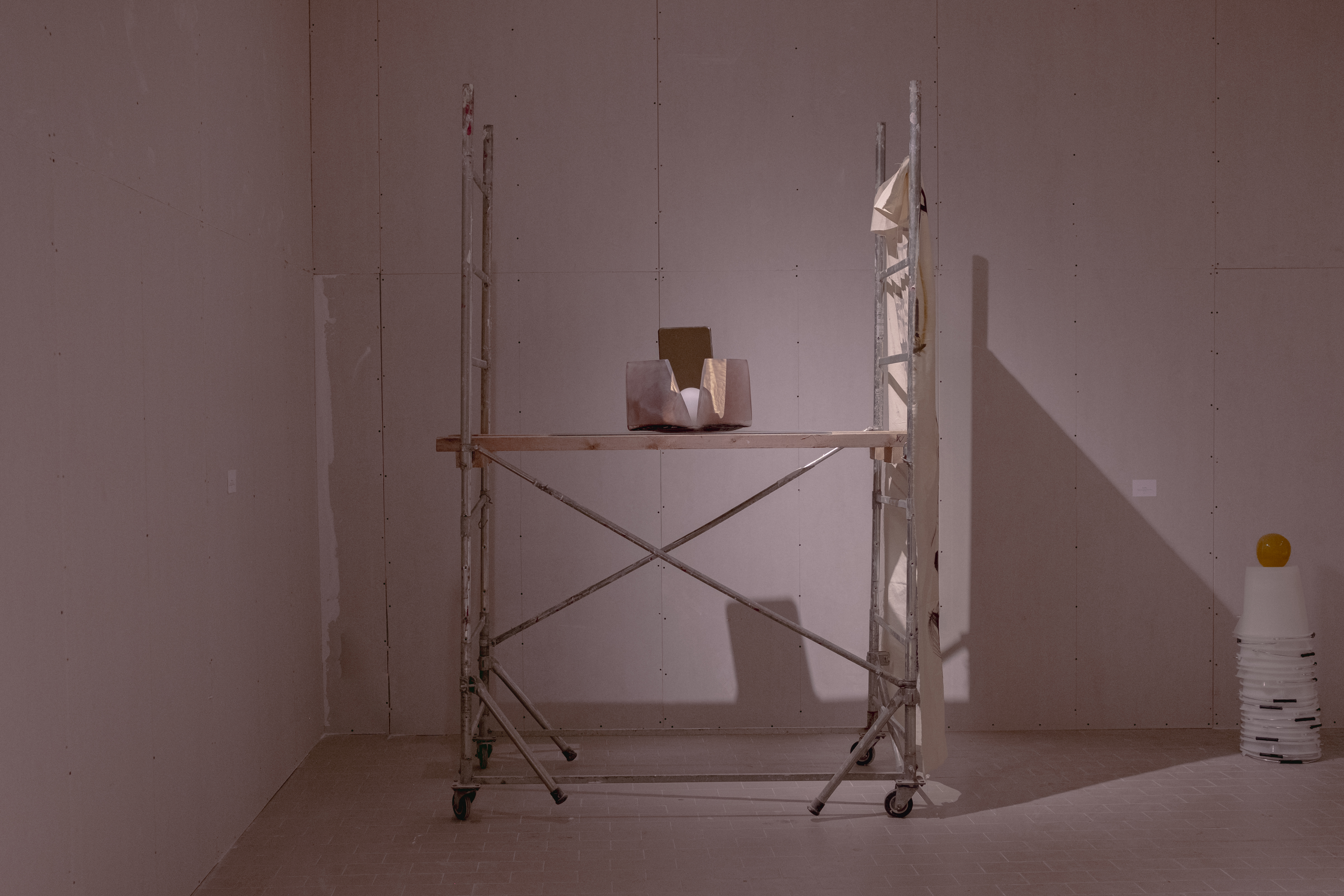 The Screen constitutes the third episode of Beaten Egg, a transmedia exhibition series by the artist Matete Martini, curated by Costanza Longanesi Cattani. The exhibition represents the development of theeponymous medium-length film written and directed by the artist, which, at the NonostanteMarras space, becomes its exhibition and tangible counterpart.
