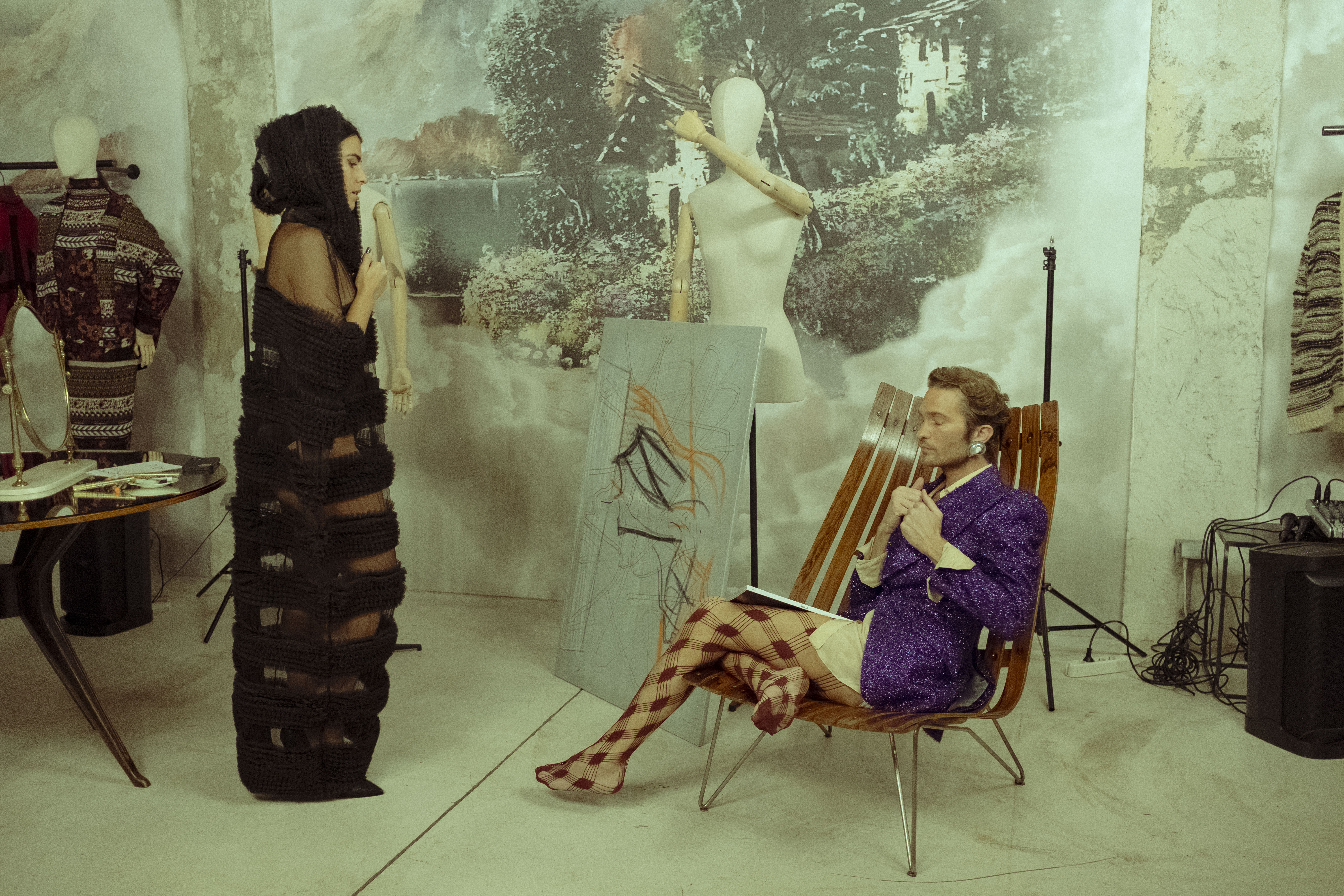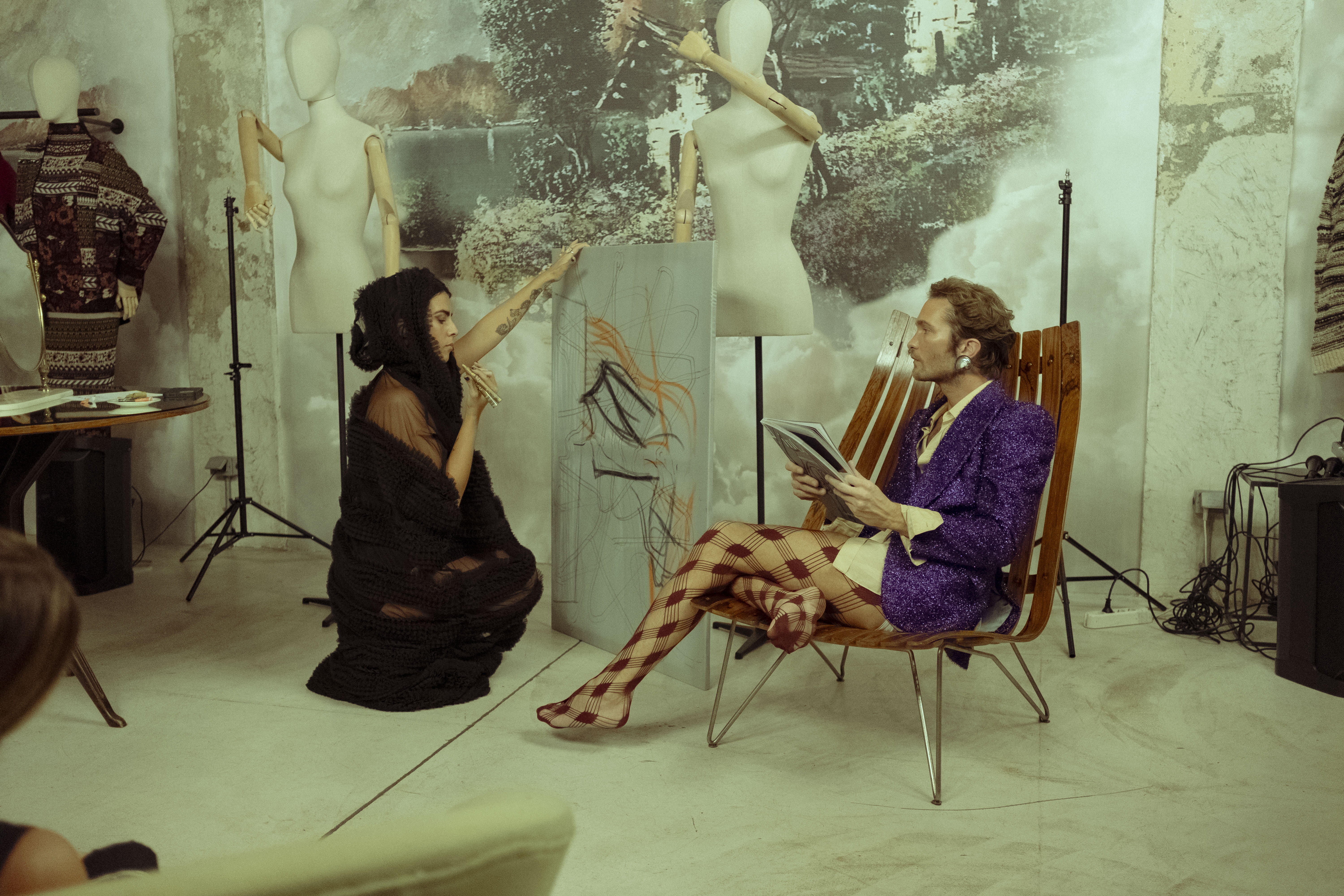 With Screen, Matete Martini moves from film to exhibition, turning the cinematic screen into a canvas where images and objects come alive. Her work blends cinema, painting on Marras fabrics, sculpture, styling, and photography — a universe where interchangeable media converge.