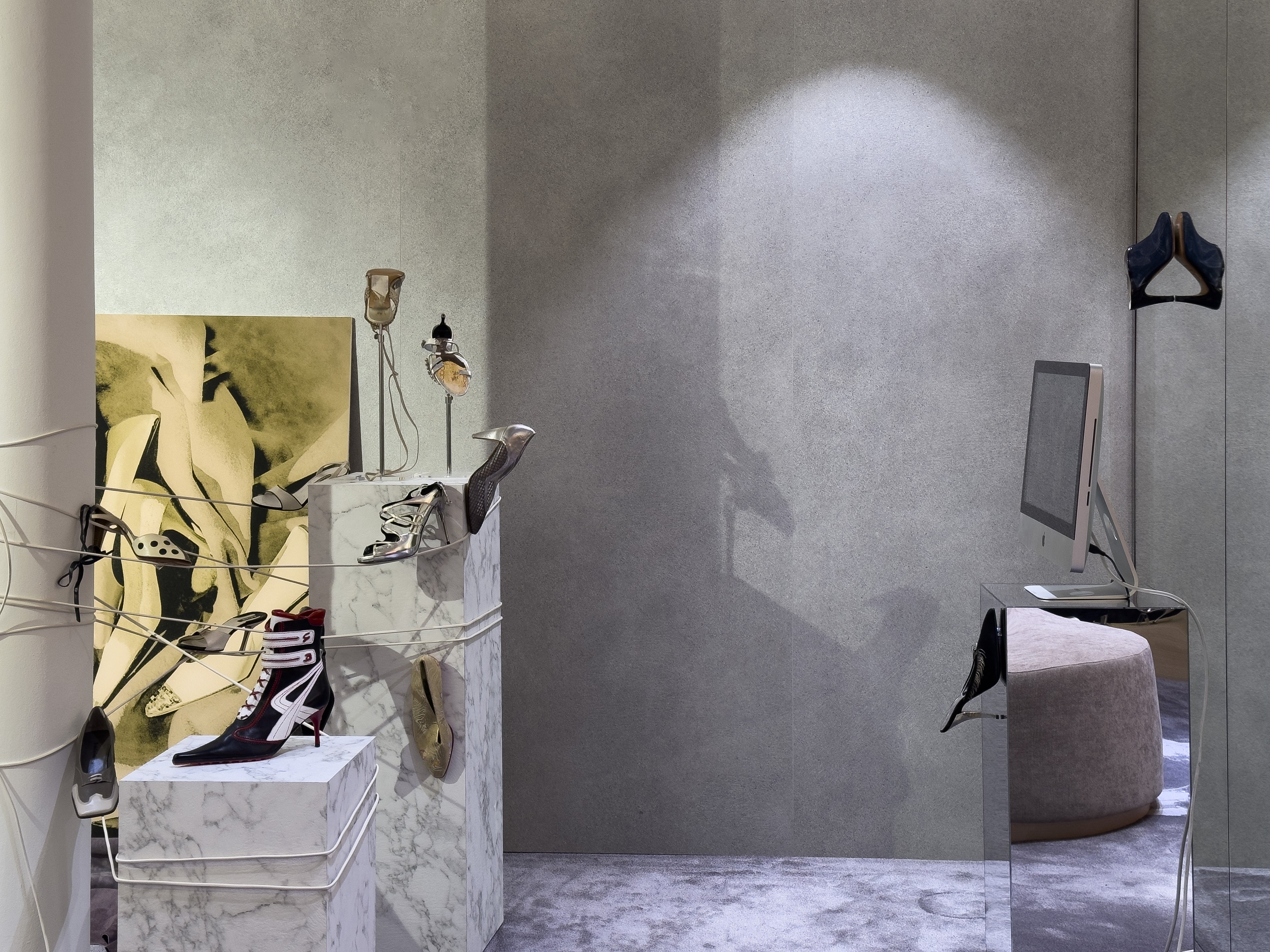 UNVEILING — the latest chapter in Baldinini’s ongoing dialogue between fashion and contemporary art — transforms the Kurfürstendamm boutique in Berlin during Gallery Weekend into a contemplative space where memory, narrative, and material exploration converge. Conceived by Elena El Asmar under the artistic direction of Matete Martini, the installation blends sculptural elements, video, and a curated window display in dialogue with the Flower Mesh collection, evoking fading light, textures, and inner landscapes.
