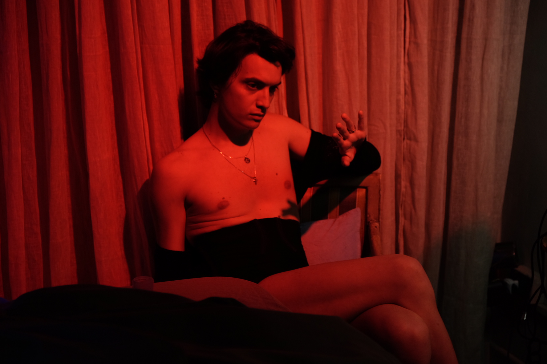 A three-act performance born from the meeting between collector Manuel Menini and Matete Martini, featuring the LGBTQ+ icon Ambrosia Fortuna, model and performer. A work charged with tension and poetry, as taut as a cat before the hole it knows the mouse will emerge from. Photography by Matete Martini, Performer Ambrosia Fortuna, Hosted by Manuel Menini, written by Giovanni Garofalo, styled by Pasquale Cangemi.